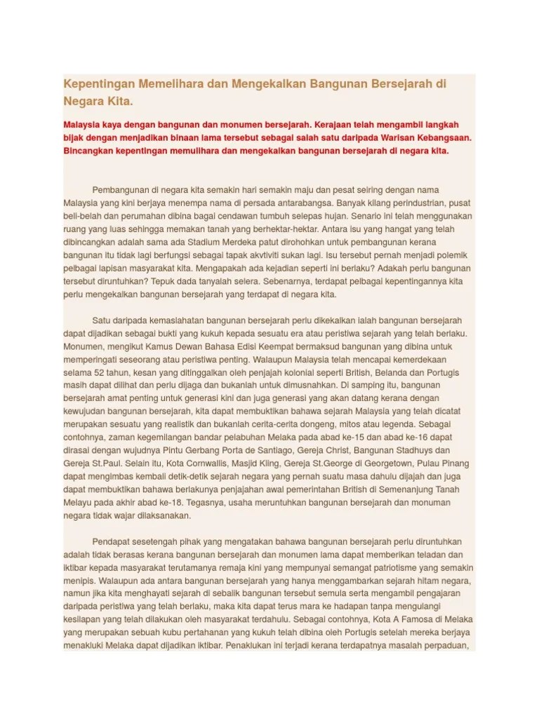Dengan terdapatnya bangunan bersejarah, generasi baharu akan lebih … Di dalam perbincangan ini pengkaji akan menerangkan tentang pembudayaan makanan pelbagai kaum di malaysia iaitu melayu, india dan china. Sebagai makluman kepada pelajar, penulisan karangan khususnya bagi mata pelajaran bahasa melayu banyak mempersoalkan tema atau tajuk yang pelbagai. 1 3.1 latar belakang pemerintahan beraja dan demokrasi berparlimen. Baca versi flipbook dari koleksi idea esei pa sem 2. Bangunan dan monumen yang bersejarah merupakan aset yang patut dipelihara dan diwarisi dari satu generasi ke satu generasi. Gereja dibuka pada tarikh 10 september 2005. Masyarakat katolik shah alam telah melobi kerajaan negeri untuk izin untuk membina sebuah gereja di bandar itu selama lebih dari 10 tahun. Himpunan soalan danjawapan kbat sejarah spm 2 isu perpaduan nasional / perpaduan kebangsaan / gagasan 1 malaysia dasar british telah menyulitkan proses mewujudkan perpaduan nasional selepas negara mencapai merdeka. Ii kandungan 1bab pendahuluan vi kedaulatan negara 2 1.1 konsep kedaulatan 4 1.2 ciri negara yang berdaulat 8 1.3 kepentingan mewujudkan negara berdaulat 10 1.4 langkah mempertahankan kedaulatan … 1.1 pemerintahan beraja kesultanan melayu melaka; • arkib negara malaysia • semua pihak yang terlibat secara langsung dalam usaha menjayakan penerbitan buku ini. Secara tuntas, bangunan bersejarah amat penting dalam pembentukan minda generasi muda negara terutamanya ke arah penghayatan warisan dan khazanah negara. Apalah lagi jika dipergunakan bagi kepentingan dakwah dan menegakkan keadilan dan kebenaran seperti yang telah dimanfaatkan oleh syekh muhammad bin `abdul wahhāb semasa gerakan …